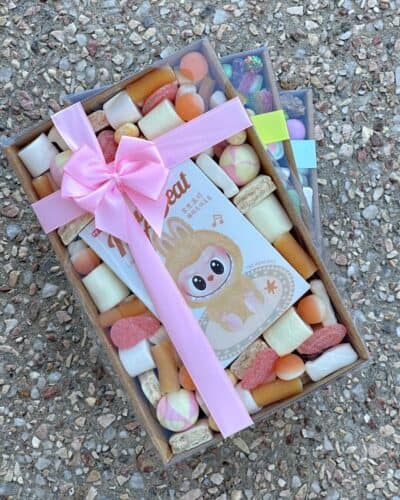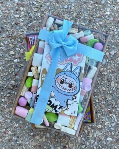 Each box includes a limited edition Labubu collectible surrounded by themed lollies, marshmallows and carefully chosen sweet treats to match the character’s playful style. It is the perfect mix of collectible gifting and dessert-box fun.